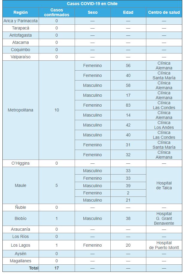 Acá te puedes enterar de las últimas actualizaciones respecto de los contagiados con el Nuevo #Coronavirus #COVID19 (17 pacientes al 10 de marzo)