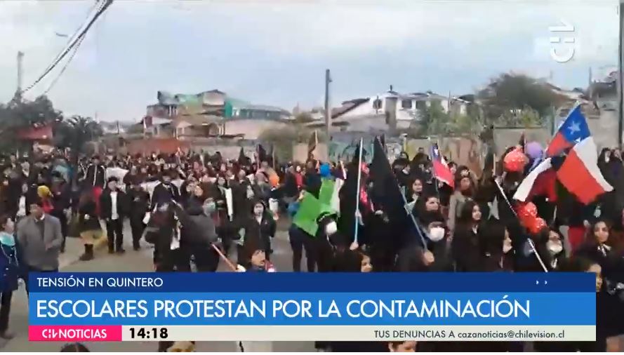 Durante la mañana de este miércoles unos 2000 estudiantes de cuatro colegios de Quintero marcharon en protesta por la contaminación ambiental en la comuna.