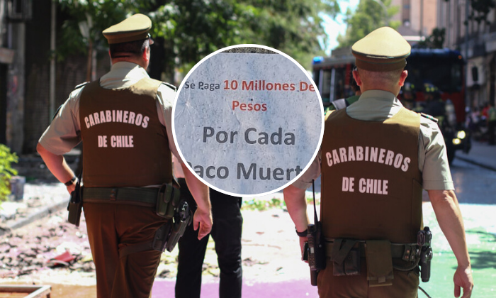 "Se paga 10 millones de pesos por cada paco muerto", se puede leer en la imagen, en la que además se pide