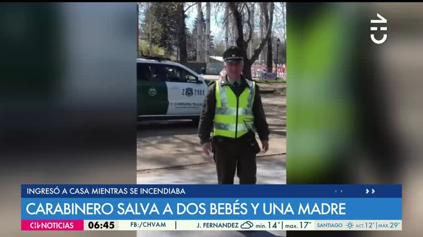 Una arriesgada, pero noble acción tiene como protagonista a un carabinero en Talca. El suboficial mayor de la Tercera Comisaría de Talca, José Gatica, rescató a una madre de nacionalidad haitiana y sus dos bebés que estaban atrapados en un incendio.