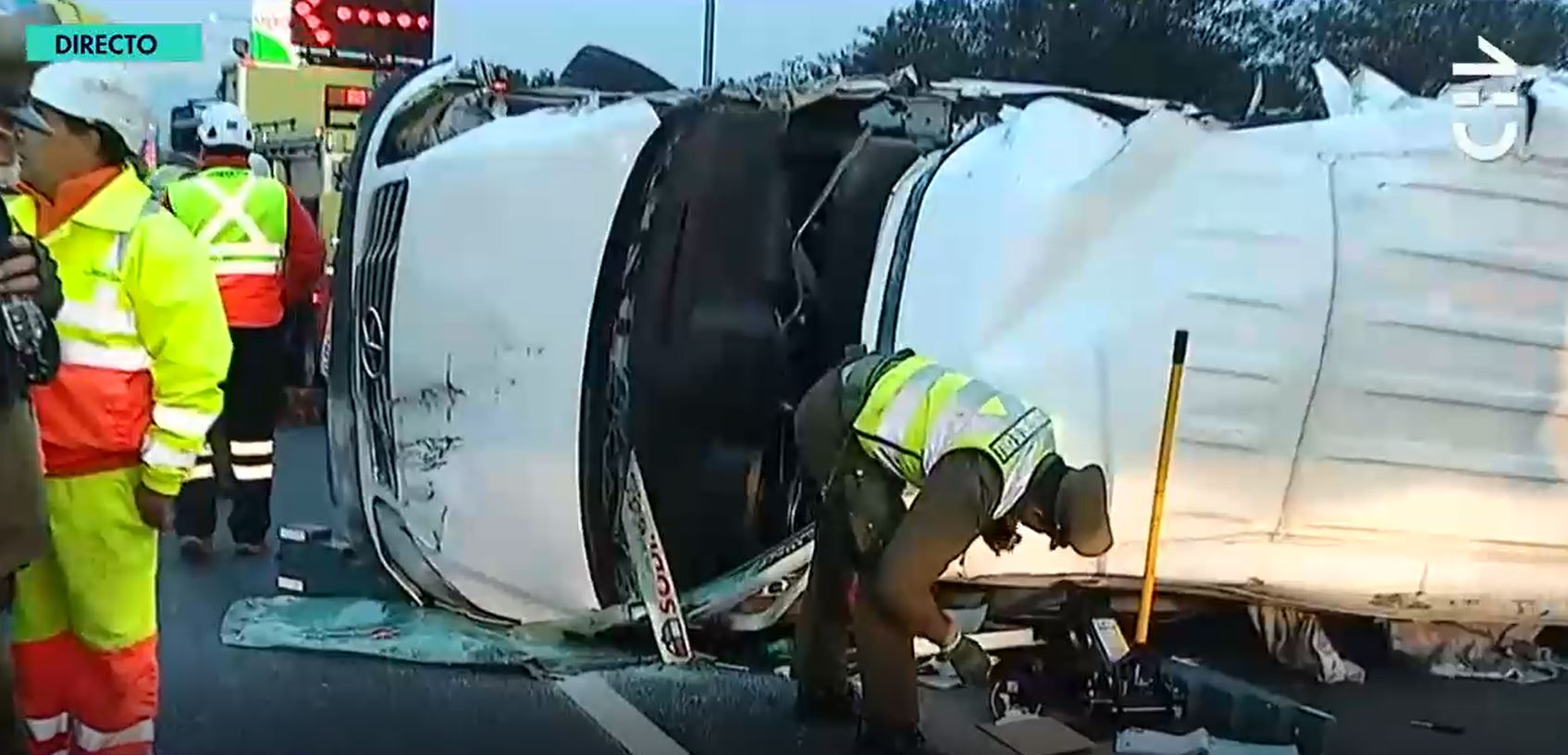 Cerca de las 6:30 horas de este lunes, un furgón de servicio volcó en la Autopista Central General Velásquez, a la altura del cuartel de la PDI con dirección al norte, dejando al conductor atrapado en su interior.