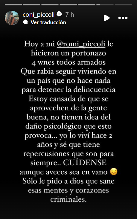 Por medio de la misma red social, Constanza Piccoli se refirió al violento robo que sufrió su hermana en Ñuñoa.