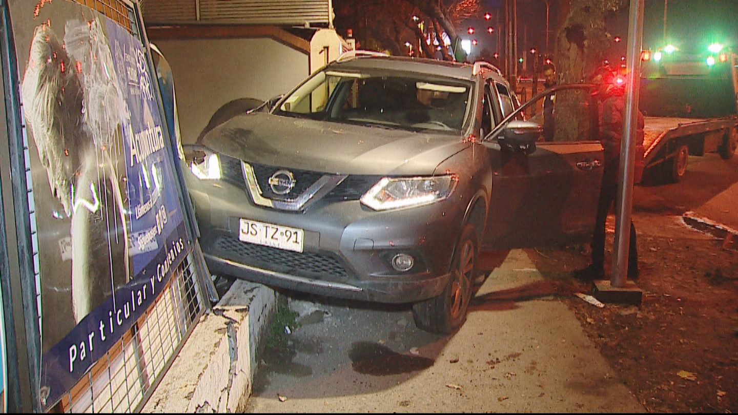 Luego de verificar la patente del vehículo en calle José Domingo Cañas, personal focalizado de Carabineros de la 33° Comisaría de Ñuñoa que realizaba patrullajes preventivos por la zona, inició un seguimiento que finalizó en la intersección de las avenidas Grecia y Marathon, cuando el auto colisionó con la reja perimetral de un centro médico que se emplaza en esa esquina.