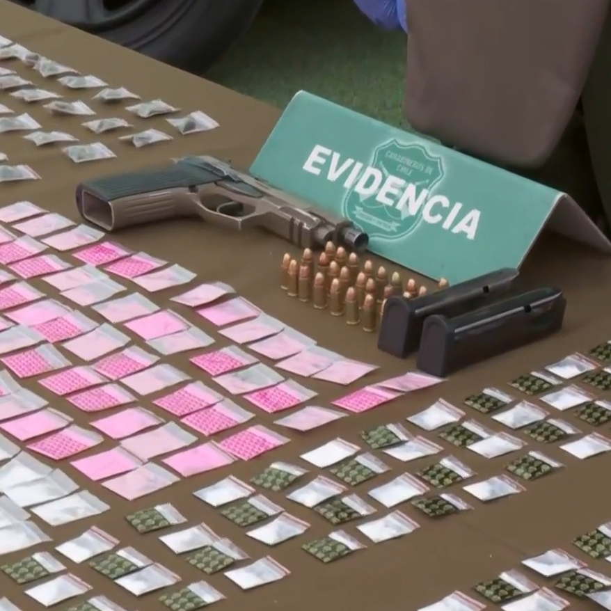 Entre las pertenencias del sujeto, personal policial halló una pistola, cartuchos y diversas sustancias ilícitas, tales como pasta base, clorhidrato de cocaína, marihuana y ketamina.