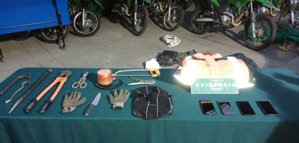 La detención de esta banda delictiva fue concretada a la altura del kilómetro 511 de la ruta, permitiendo además recuperar la totalidad de las especies entre las que habían guantes, protecciones auditivas, esmeriles, destornilladores, alargadores, una bomba de agua y un regulador médico.
