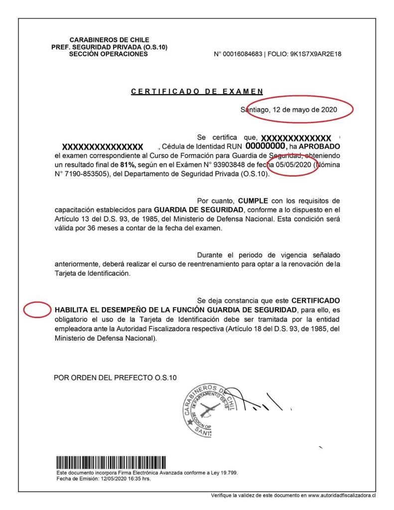 Desde Carabineros llaman a la calma. "Efectivamente, las personas que ingresan al sistema de seguridad privada, son corroboradas en distintas instancias de ese proceso. En nuestros controles de auditoria podemos comprobar la veracidad de los documentos". Lo dice el coronel José Luis Pincheira, del departamento OS-10, el organismo a cargo de certificar a los guardias.
