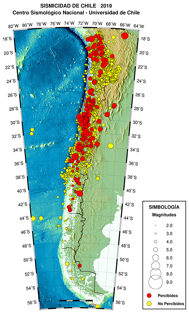 Lee también: Proceso constituyente: Por qué la convención mixta no tiene nada que ver con que haya paridad de géneroEn comparación a otros años, Barrientos señaló que "el año 2019 está un poco más libre de réplicas que otros años, aunque un país como Chile, que tiene grandes terremotos de forma frecuente, es difícil que en algún momento esté totalmente libre de réplicas, ya que terremotos tan grandes como el del Maule 2010 dejan tensionada su área de ruptura por mucho tiempo, lo mismo pasa con los terremotos de Iquique 2014 e Illapel 2015, de los que uno podría esperar todavía algo de influencia en la sismicidad".