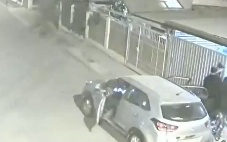 En cerca de tres minutos un grupo de seis sujetos robó una casa y una camioneta en la comuna de Maipú. El hecho ocurrió durante la noche de este miércoles y quedó grabado por las cámaras de seguridad de vecinos. En los registros se ve cómo forcejean el portón para ingresar a la vivienda, donde con armas de fuego intimidaron a los habitantes. Sustrajeron todos los elementos que pudieron y además, se llevaron el vehículo de los dueños de casa.