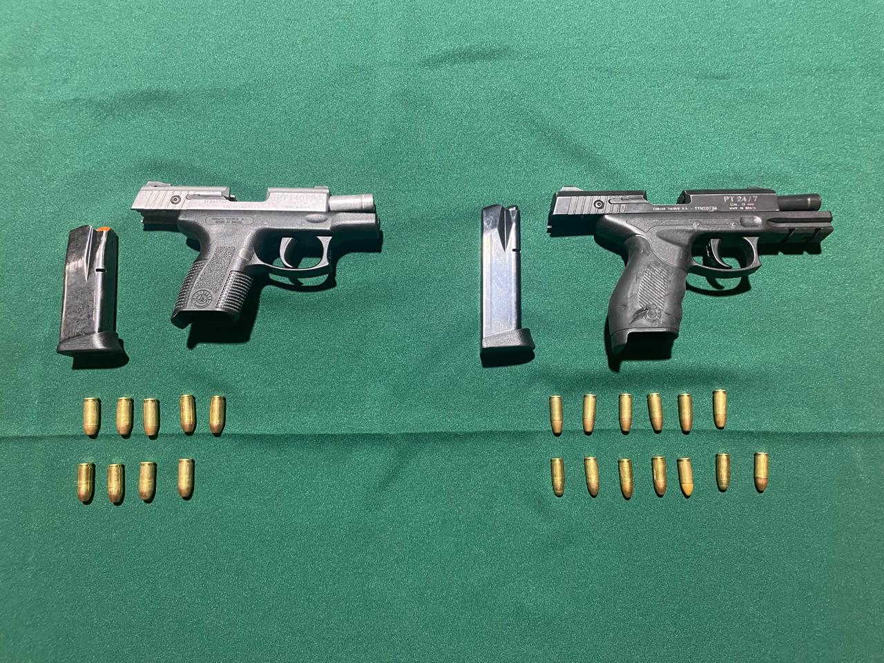 Tras eso, la policía ingresó al recinto, ubicado en Lucrecia Fernández con Antártica, y detuvo a los sujetos, logrando recuperar dos armas con sus respetivos cargadores y municiones: