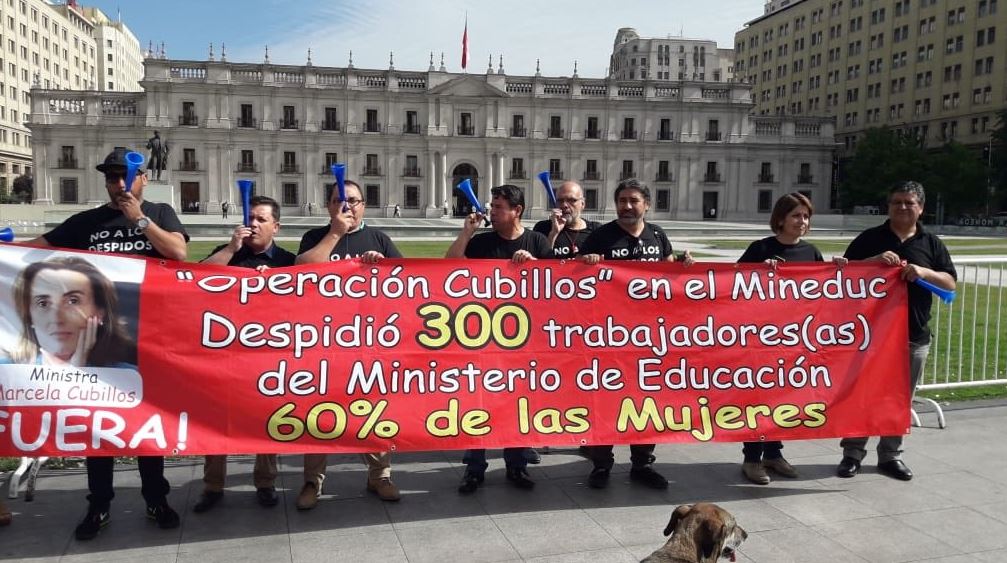AHORA: en el marco del Paro Nacional Indefinido, trabajadores del Ministerio de Educación se manifiestan frente al Palacio de la Moneda @CNNChile @anefchile @adnradiochile @Mega pic.twitter.com/FiB2mBDTMy— Directiva Nacional (@ANDIMEnacional) December 11, 2018