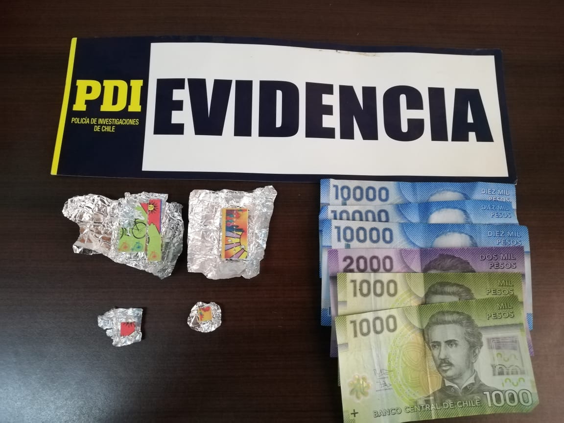 El hecho ocurrió este jueves, cuando el equipo Microtráfico Cero (MT-0) coordinó la compra de la droga en un sector céntrico de la comuna, procediendo a la incautación de 21 estampillas con dosis de LSD y la suma de $34 mil.