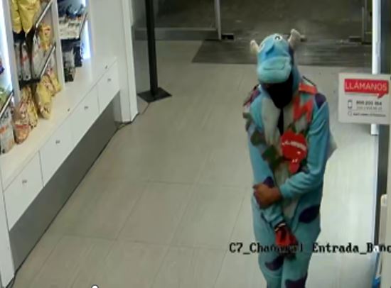 disfraz de dinosaurio y guantes, un sujeto protagonizó un violento robo al interior de un servicentro de Chañaral, Región de Atacama, siendo
