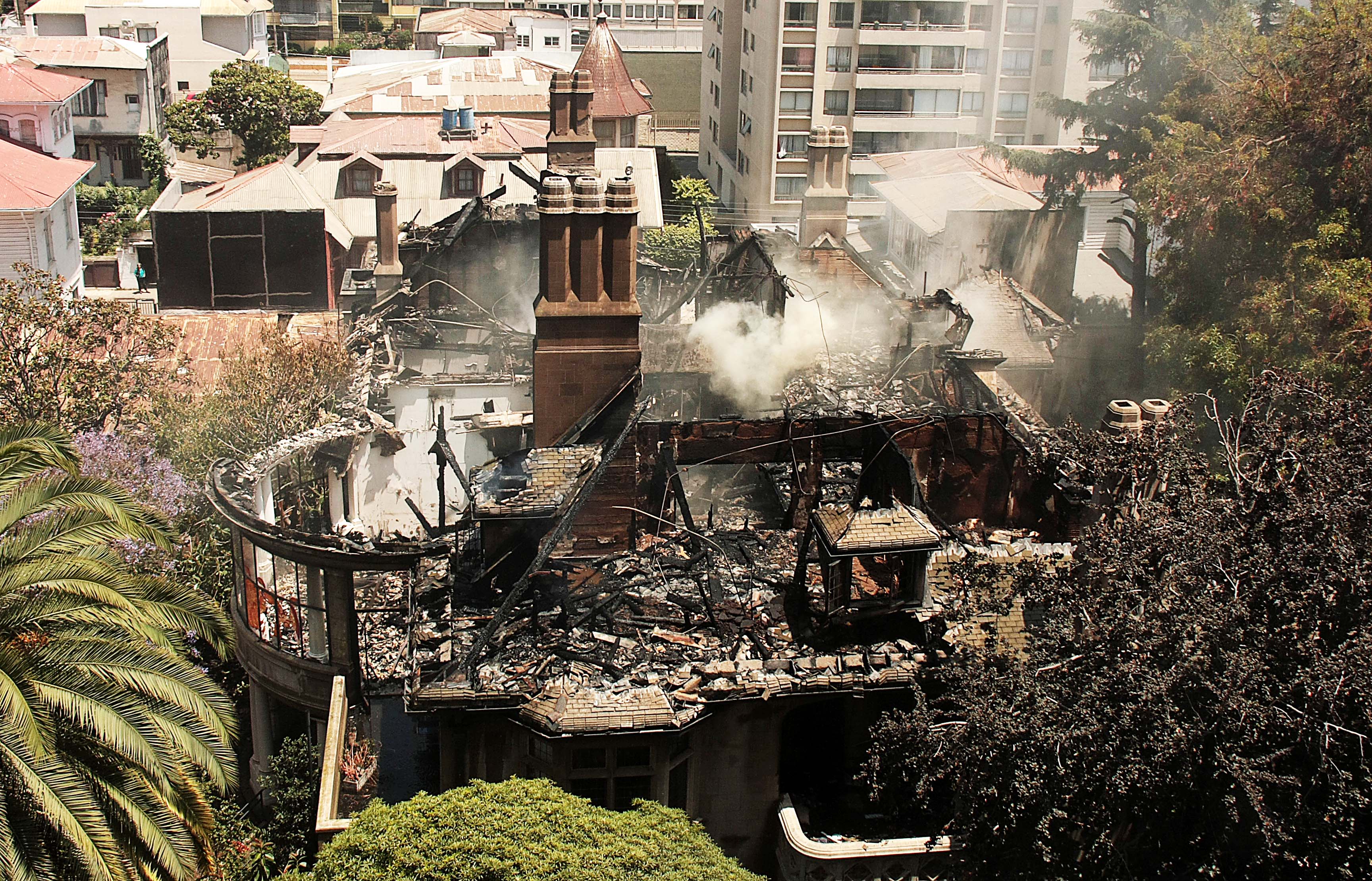 Incendio consumió monumento histórico "Casa Italia" en Viña del Mar