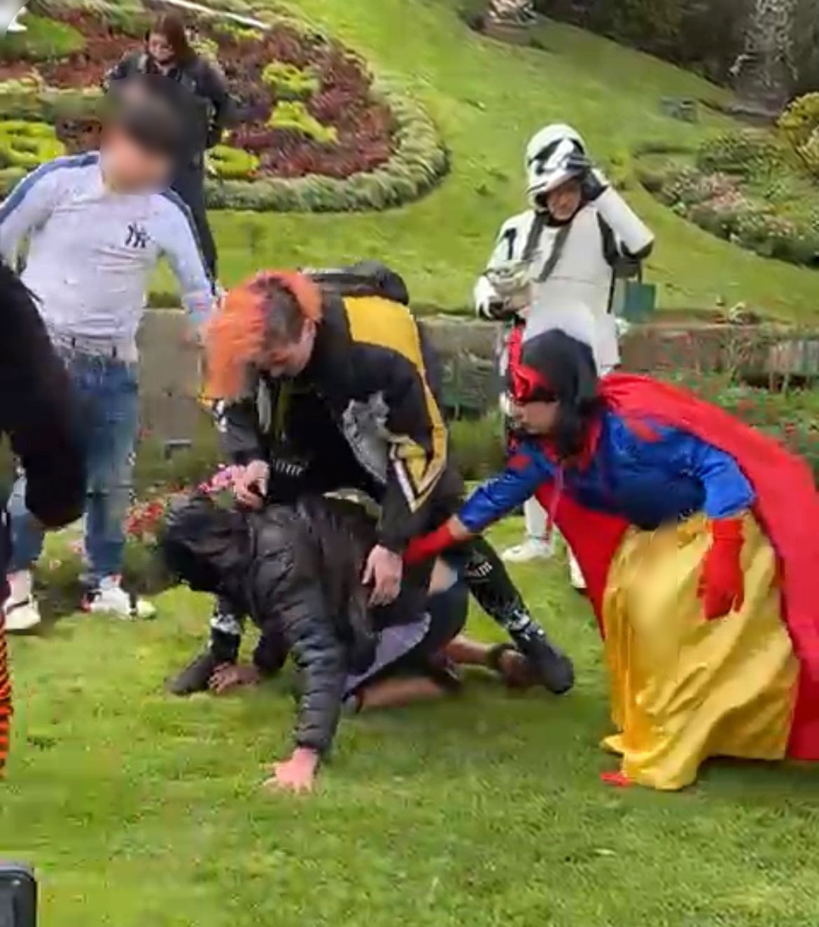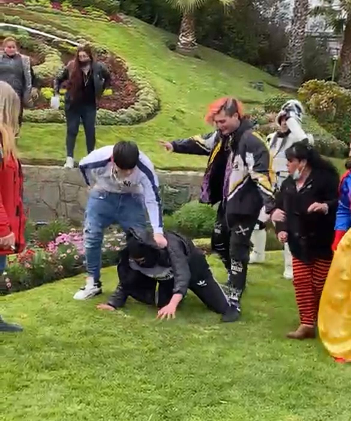 Así lo ratificó un hombre, disfrazado de Spider-Man, quien pudo observar lo acontecido y detalló que "fueron agresivos, rompieron todo (...) Lamentablemente la gente tuvo que interferir, detenerlos, llegó Carabineros y fue detenido"