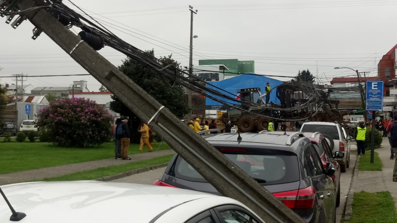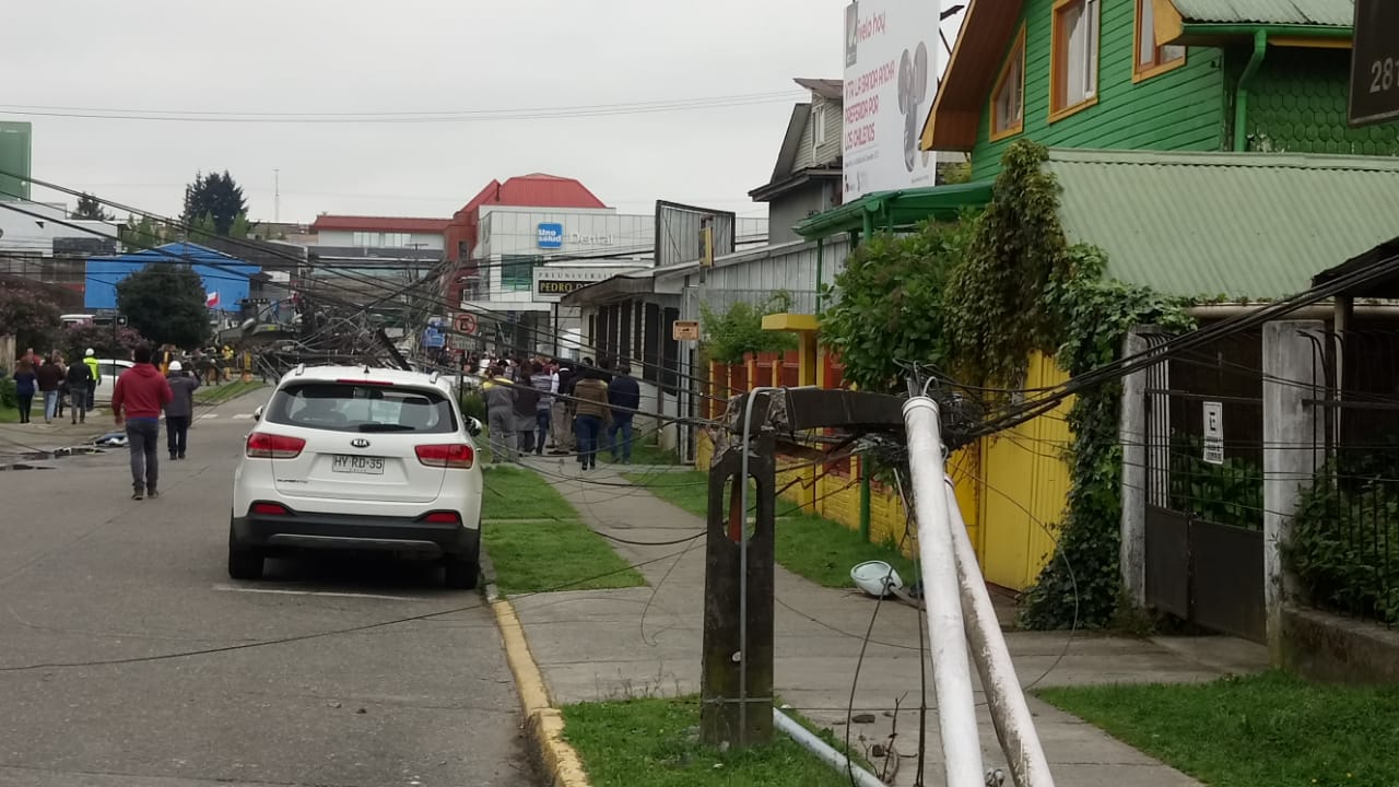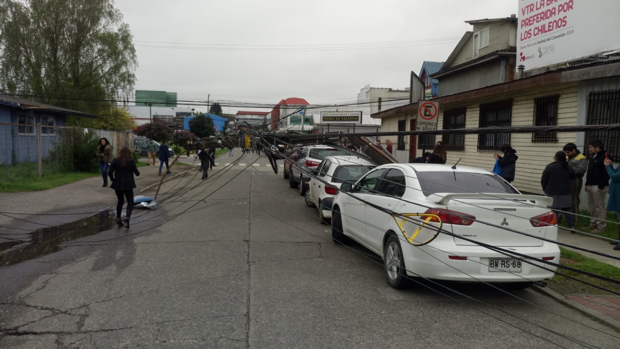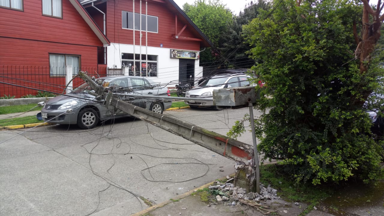 El incidente dejó a gran parte del centro de Valdivia sin energía eléctrica. Finalmente fueron 5 postes derribados, con 3 autos dañados producto de la caída. Asimismo, se registraron daños en una casa, todo dentro de un radio de 5 calles de alta concurrencia.