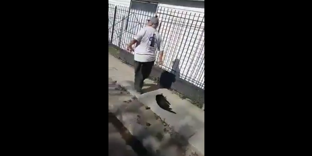El dueño comenzó a discutir con la persona que lo grababa y luego, prosiguió caminando arrastrando al gato que estaba tendido en el suelo.