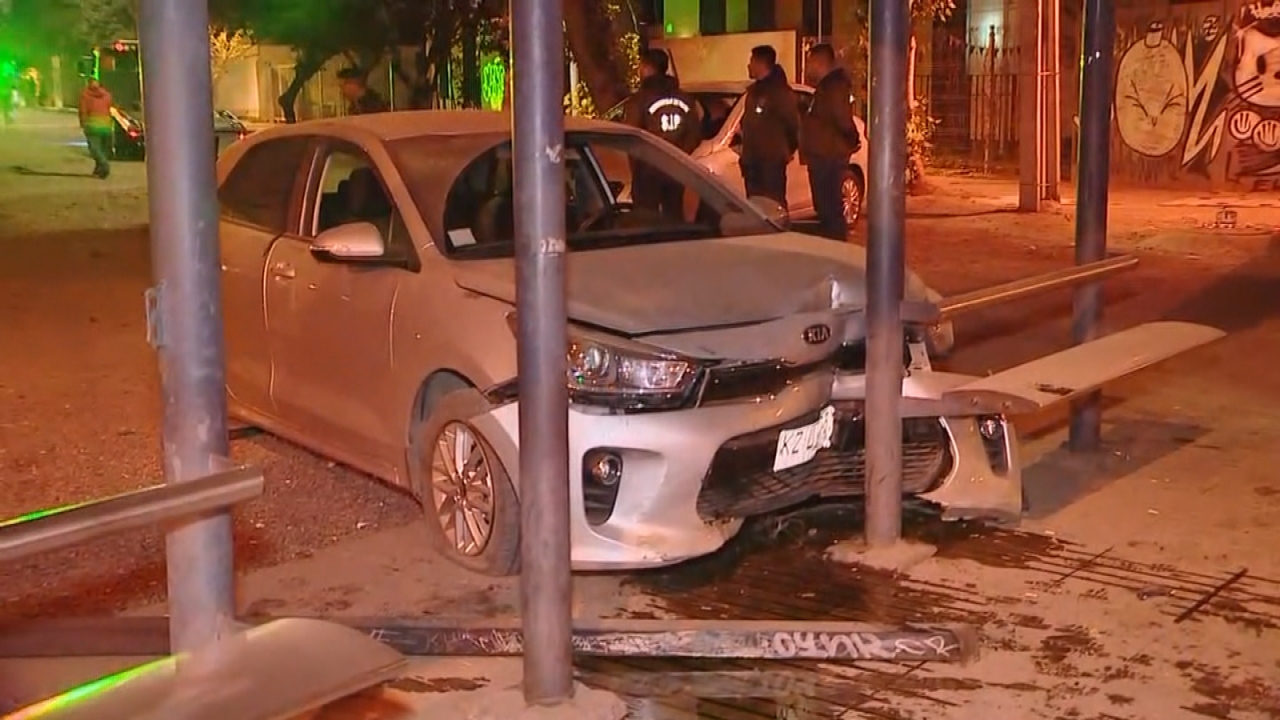 Por su parte, el tercer delincuente, que escapaba en el auto Kia recién robado, chocó a unos 50 o 100 metros del primer accidente, quedando incrustado en un paradero del transporte público.