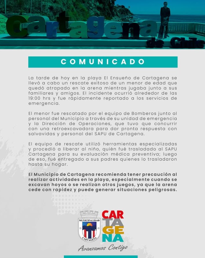 Desde la municipalidad de Cartagena hicieron un llamado a evitar este tipo de juegos riesgosos en la arena para evitar nuevos accidentes.