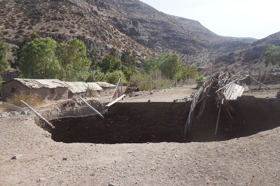 Por esta situación, autoridades como equipos técnicos de Sernageomin, Carabineros y la Seremi de Minería, además de la concejal de Vicuña, Marta Castillo, fueron a visitar al poblador y se dirigieron al lugar para analizar cómo se originó el socavón.