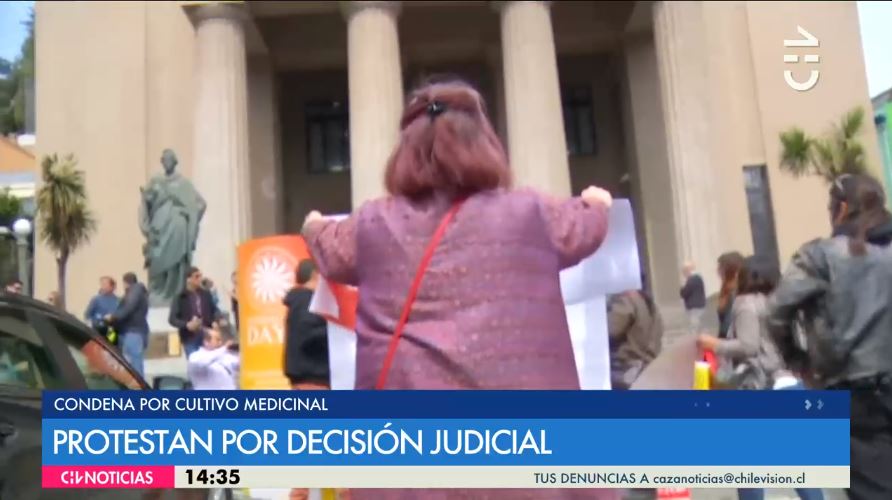 Un grupo de personas realizaron una protesta en el frontis de la Corte de Apelaciones de Valparaíso, contra la decisión de la justicia que lo condenó por tener un cultivo de marihuana medicinal en su casa.