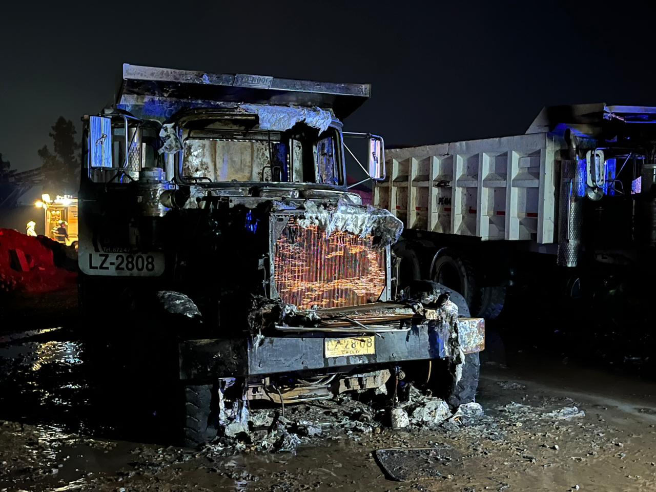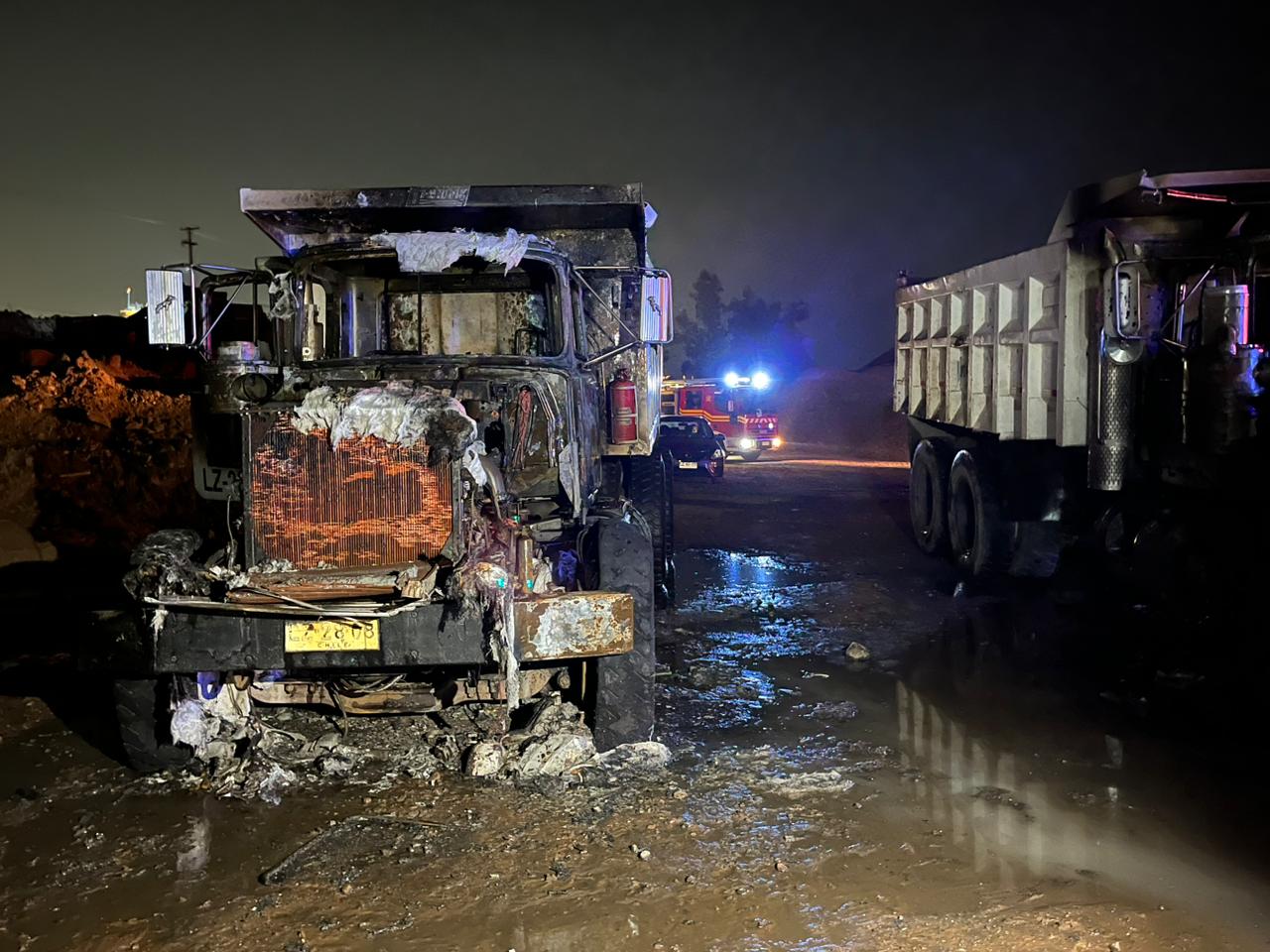 Según informó Jesús Valenzuela, comandante de la compañía de Puente Alto, los camiones se encontraban a una distancia de 25 metros entre sí. En el terreno, por otro lado, encontraron un bidón que al parecer tendría un acelerante tipo bencina.