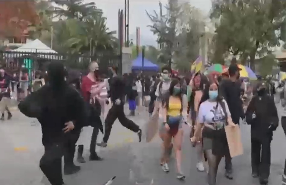 Un grupo de jóvenes participó de una marcha que terminó con desórdenes en el Parque Metropolitano, lugar donde sujetos encapuchados lanzaron proyectiles hacia la entrada. Carabineros disperó la protesta con un carro lanzagases.