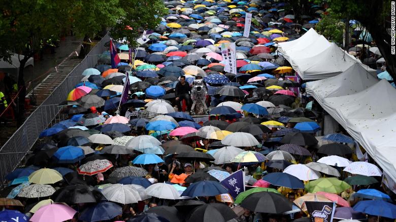 Decenas de miles de personas desafiaron la lluvia torrencial el viernes para manifestarse a favor del matrimonio entre personas del mismo sexo fuera del parlamento, cuando los legisladores comenzaron a votar sobre tres proyectos de ley, uno presentado por el Gabinete del país, que finalmente sería exitoso, y dos Abajo las facturas rivales presentadas por grupos conservadores.