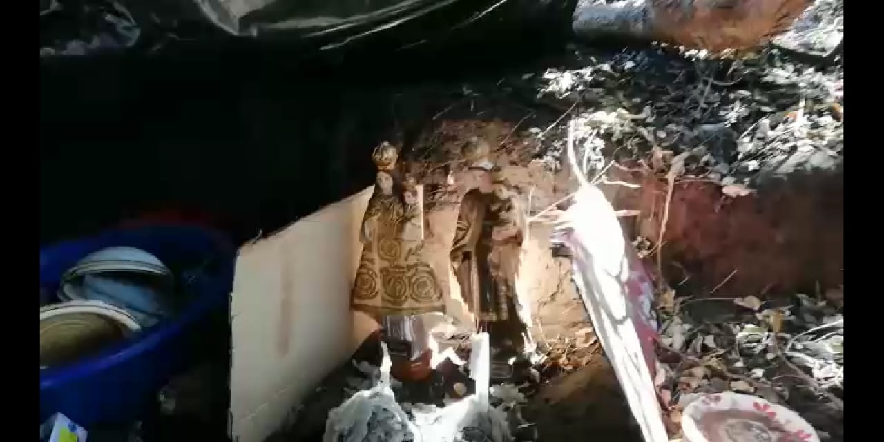 En medio del gigantesco decomiso, los funcionarios detectaron un verdadero campamento donde los cuidadores del cultivo se alimentaban y pernoctaban, aunque lo más insólito fue un altar que mantenían con imágenes de la Virgen.