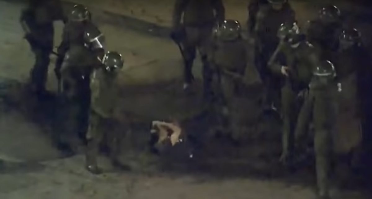 Los hechos ocurrieron el lunes 21 de octubre, durante la tercera jornada de toque de queda. Cámaras de CHV Noticias y CNN Chile captaron el momento exacto cuando los funcionarios golpearon a un hombre que estaba con un sartén en mano.