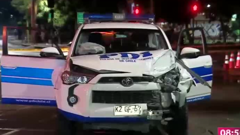 Personal de la PDI protagonizó un violento choque con la camioneta de un feriante que venía de la Vega, esto mientras se dirigían a un procedimiento en la comuna de San Bernardo. El hecho ocurrió en la comuna de San Miguel, específicamente en el cruce de Santa Rosa con P.S. Vildósola. Al interior del vehículo policial iban cuatro personas, las cuales fueron trasladadas a un recinto asistencial, mientras que en el otro auto solo iba el civil, quien tuvo lesiones leves, pero su vehículo terminó volcado. Revisa aquí los detalles.
