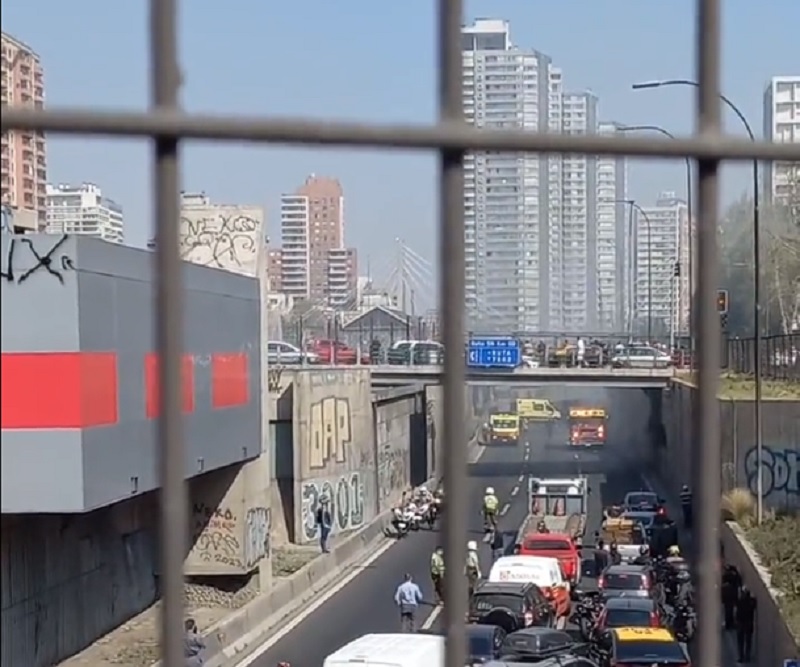 Mucho humo y sirenas fueron algunos de los elementos que llamaron la atención de los vecinos de la comuna de Santiago, luego de que un vehículo motorizado se encendiera en llamas en plena Autopista, cercano a la salida hacia Agustinas.