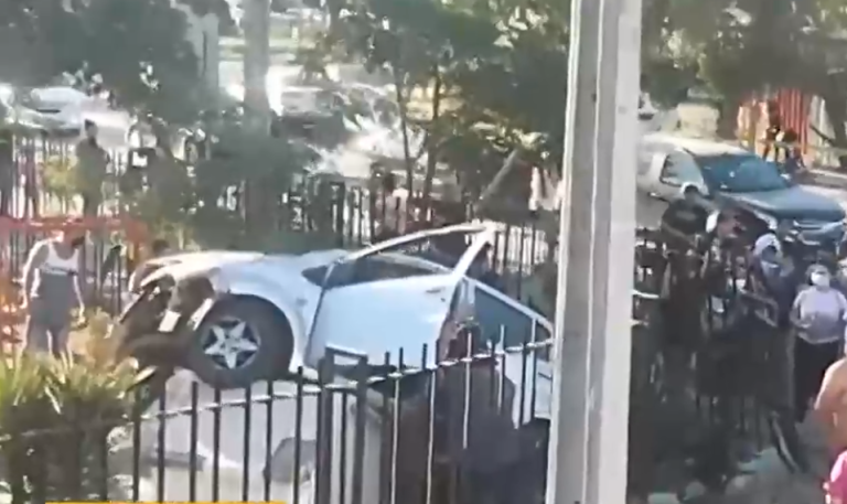 Un impactante accidente ocurrió este lunes en la comuna de San Ramón, donde un vehículo impactó contra una plaza de juegos al interior de un condominio.
