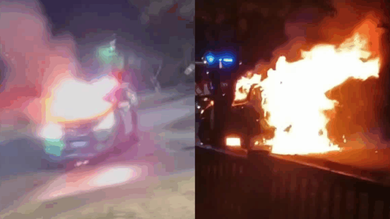 VIDEO | Patrulla de Carabineros terminó incendiada en Los Ángeles