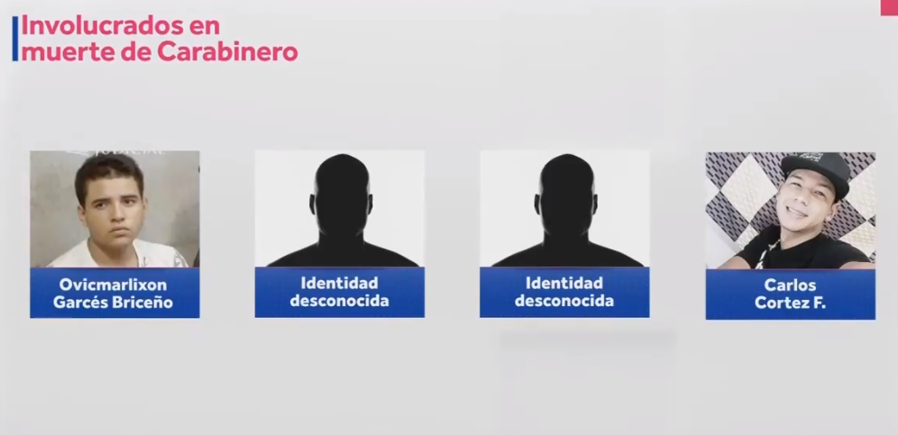 Gracias a la recopilación de imágenes, también se logró comprobar que los sujetos involucrados al momento de la muerte del carabinero eran Ovimarlixion Garcés, Carlos Cortez y otros dos sujetos que aún no son identificados.