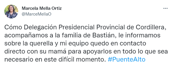 “Acompañamos a la familia de Bastián, le informamos sobre la querella y mi equipo quedó en contacto directo con su mamá para apoyarlos en todo lo que sea necesario en este difícil momento”, comunicó la autoridad.