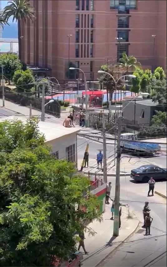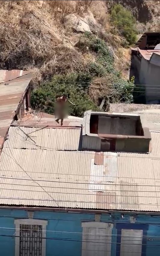 los uniformados solicitaron al hombre que se bajara de la techumbre. Primero intentó esconderse, luego realizó destrozos en los techos, posteriormente se sentó y desafió a los uniformados. Finalmete