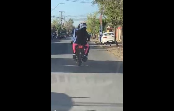 La pareja, quienes se transportaban en una pequeña moto sin patente, fue captada cerca de las 9 de la mañana del martes en Avenida La Granja, una calle por la que transitan una gran cantidad de vehículos y que es de una sola vía.