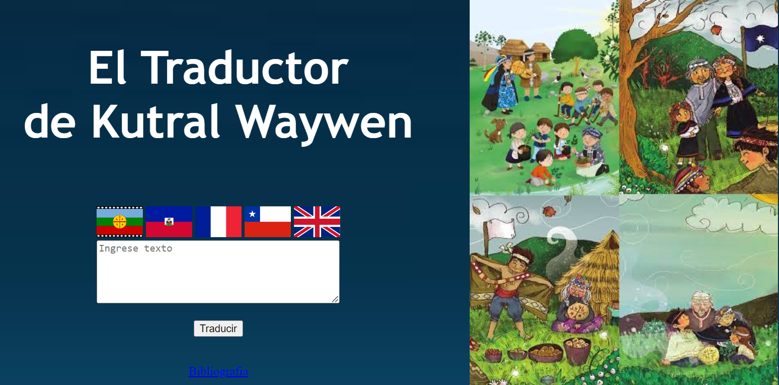 sitio web de kutralwaywen. Una vez dentro solo es necesario ingresar la frase a interpretar. Esta herramienta esta