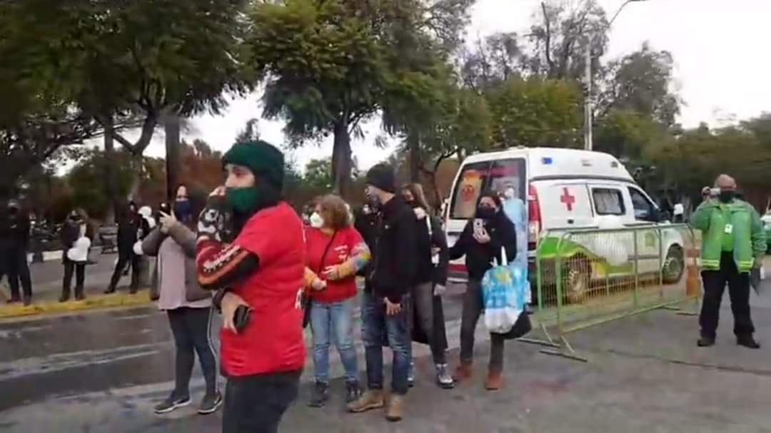 Una de las paradas fue en la cancha San José. En los videos grabados por los mismos asistentes, se aprecia cómo mucha gente se acercó a la puerta principal sin respetar la distancia social recomendada. Así se mantuvieron durante varios minutos.