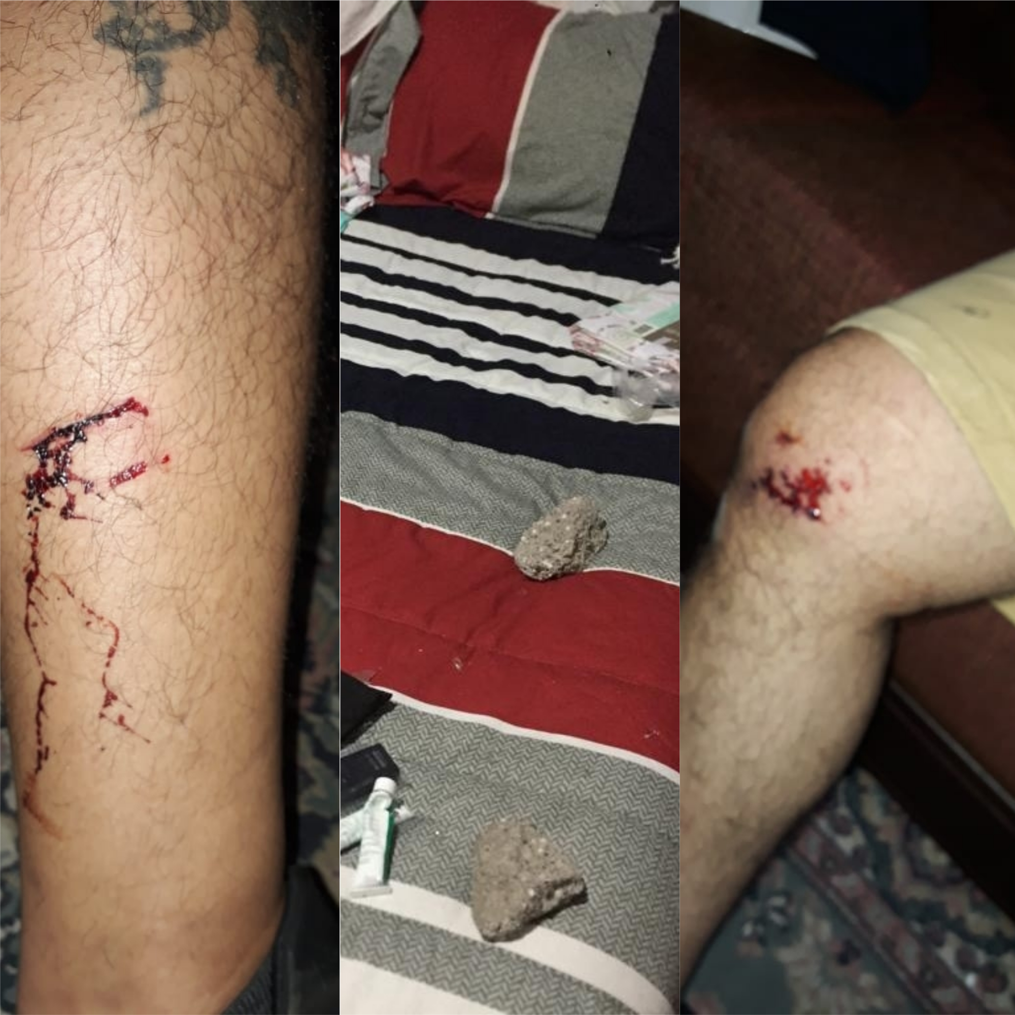 Tras eso, calcula que unas 20 personas comenzaron a lanzar piedras y otros objetos, por lo que debieron esconderse en el patio trasero.