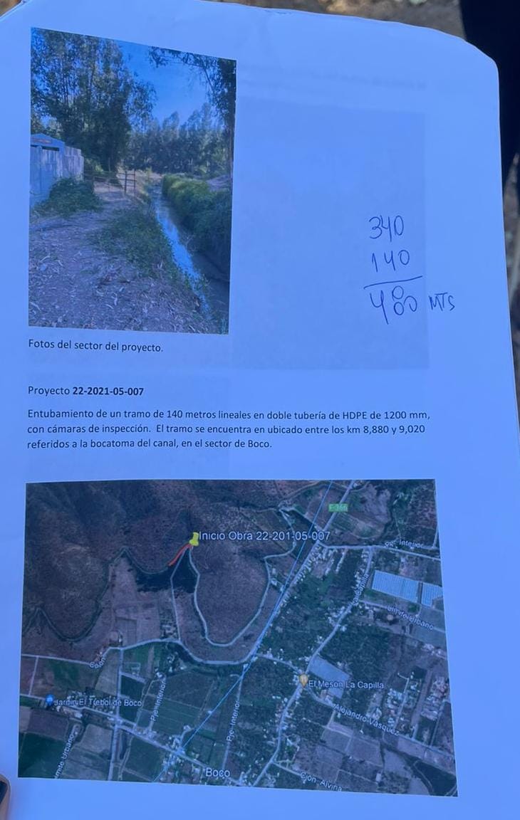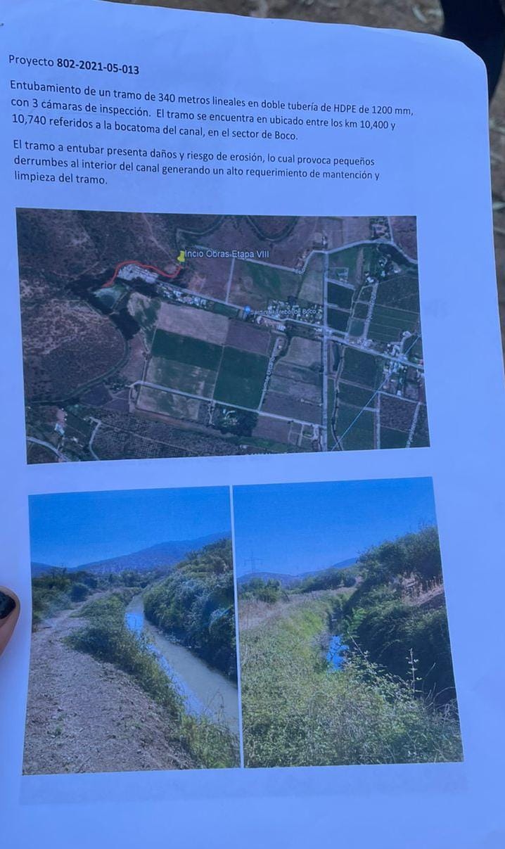 Una de las principales denuncias de la comunidad es el desconocimiento que tiene tanto la población de Boco como la Municipalidad de Quillota respecto a la documentación oficial relacionada al proyecto de entubamiento.