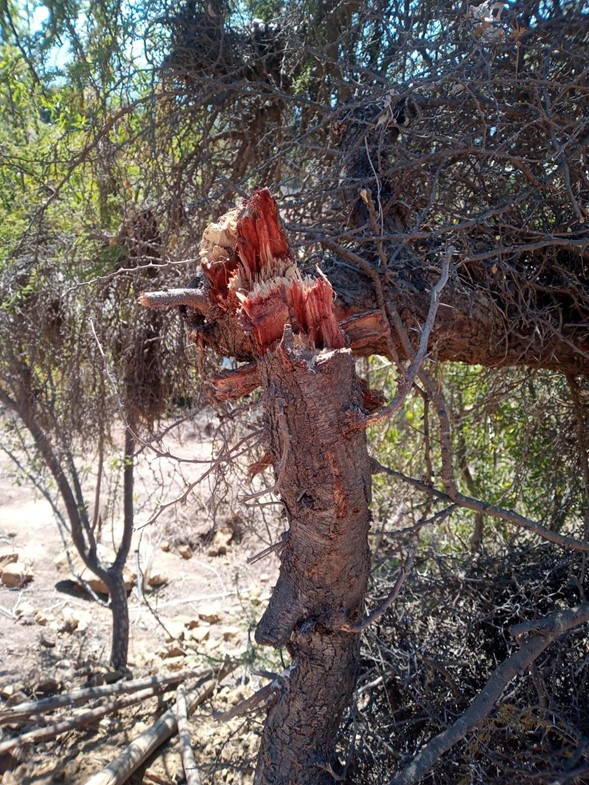De acuerdo al documento emitido por el municipio, lo anterior se debe "posiblemente a un mal manejo de los trabajos realizados asociados al entubado del canal". De acuerdo a este antecedente, se recomienda solicitar a CONAF los planes de manejo para especies nativas acorde al Decreto 366, que reglamenta la explotación de este tipo de especies forestales.