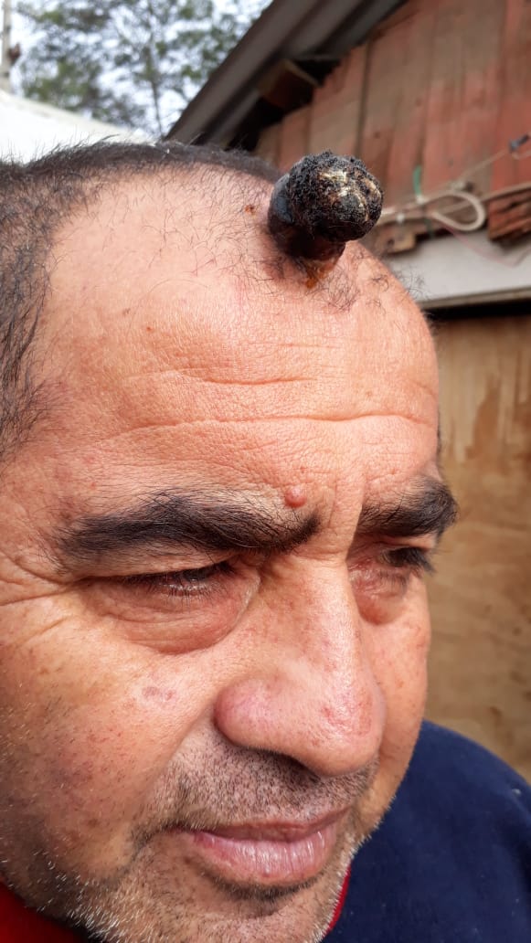 Fue en enero cuando Patricio Pardo notó algo extraño en su cabeza. Se trataba de una mancha que sin querer pasó a llevar y comenzó a sangrar. Desde ese día a la fecha, la herida no sólo aumentó su gravedad, sino que se transformó en una protuberancia que hoy tiene más de cuatro centímetros de diámetro.