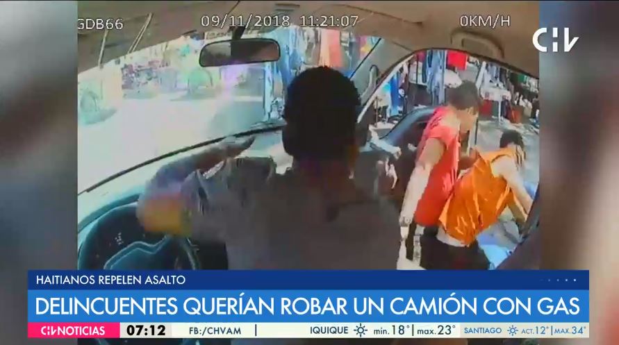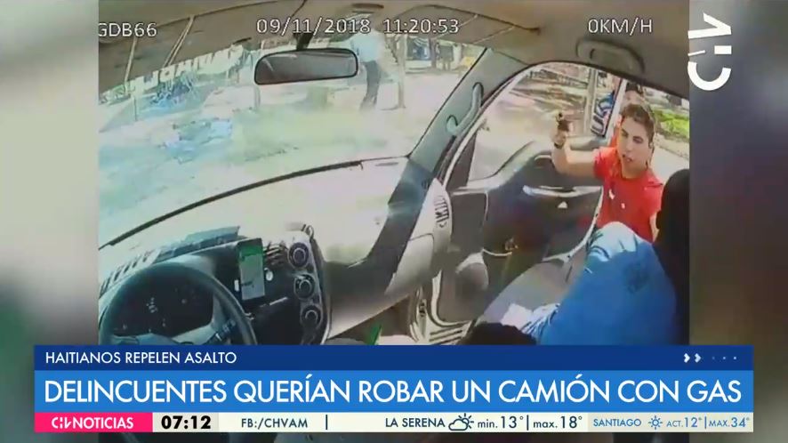 El hecho quedó en el registro de una cámara de seguridad del vehículo, el que fue hecho llegar por un Cazanoticias y donde se aprecia el violento actuar de los sujetos y el momento exacto en que le extranjero logra apoderarse del arma.