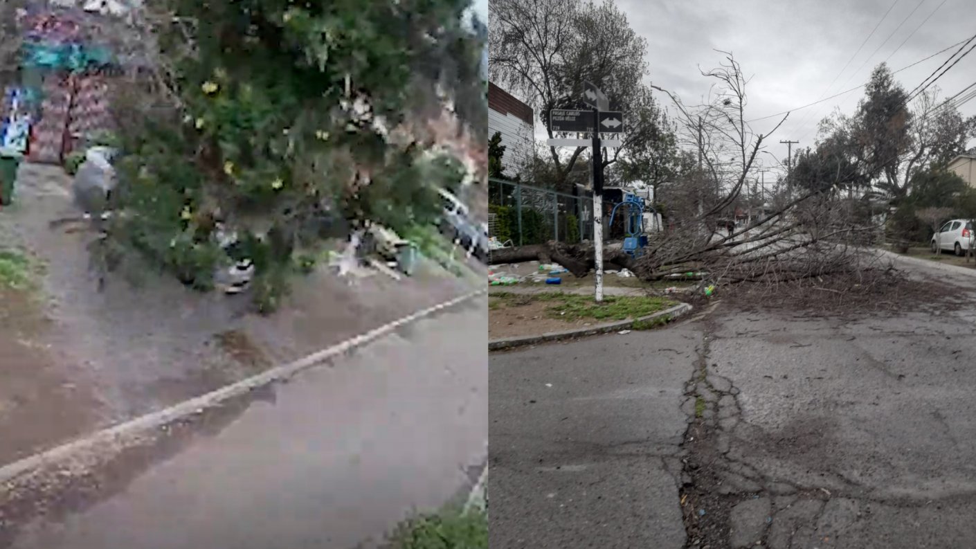¡Se salvó de milagro! Árbol cayó sobre vecino en Quinta Normal tras fuertes vientos