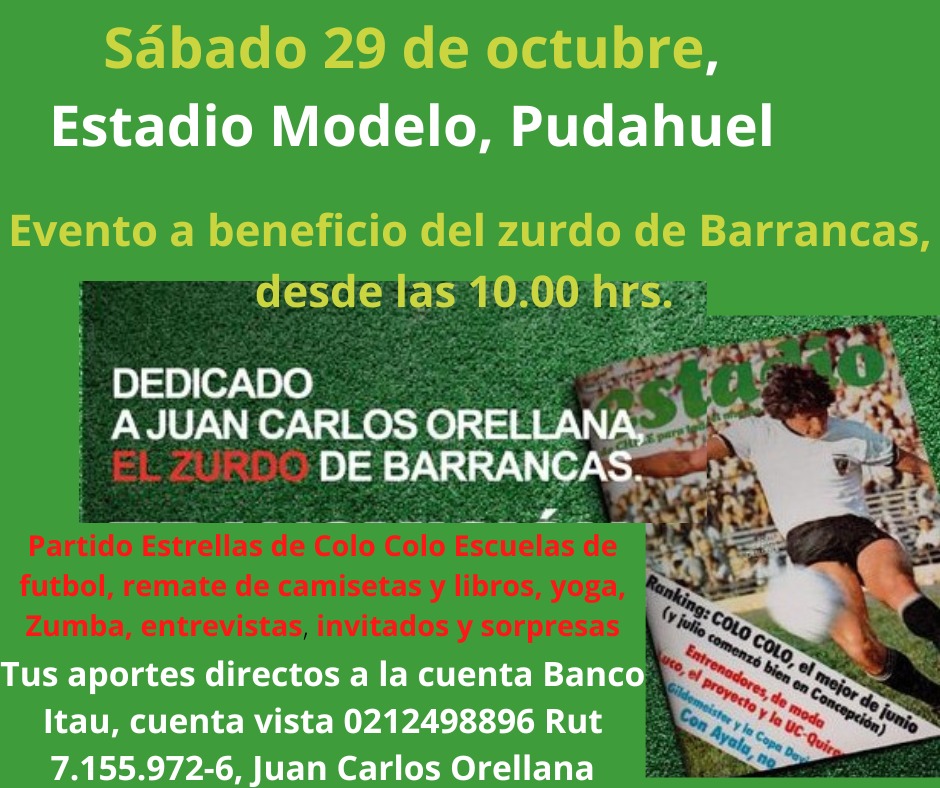 A raíz de todo esto, sus cercanos organizaron un evento a beneficio de Orellana, el cual se realizará el sábado 29 de octubre en el Estadio Modelo de Pudahuel y que contará con históricos futbolistas y diversas actividades.