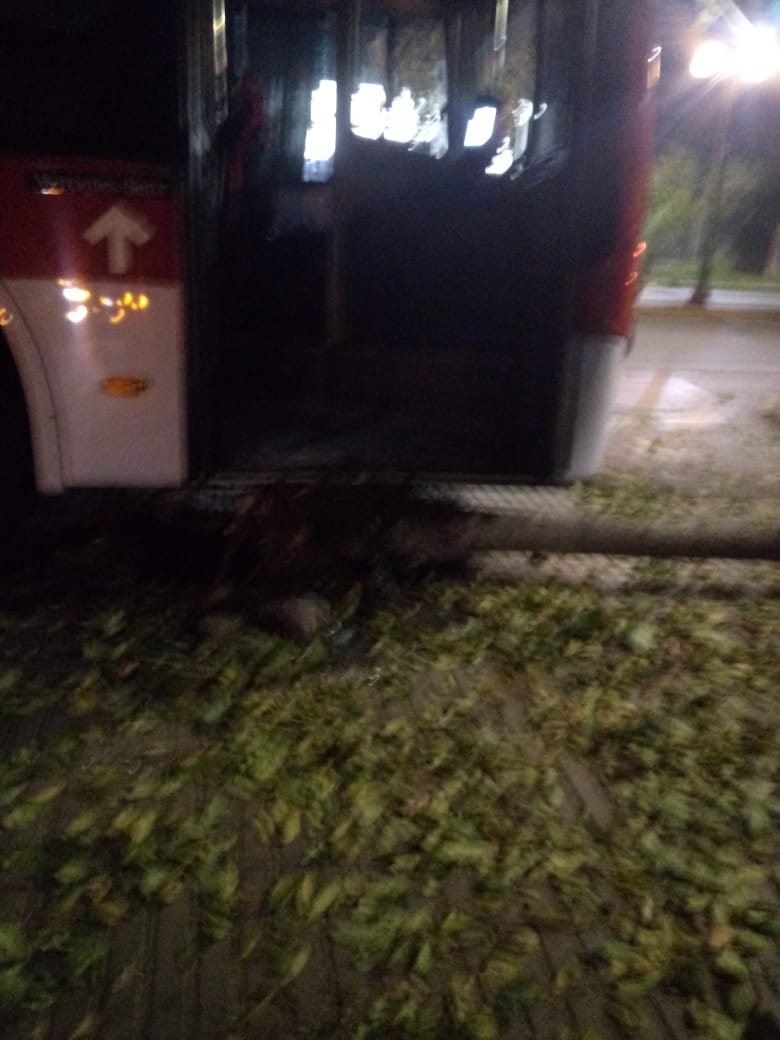Sin embargo, la técnica de las piedras no funcionó. El bus sólo se detuvo al impactar con un árbol arrancándolo de raíz.