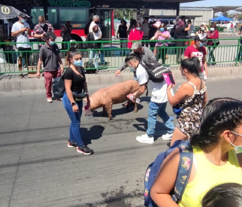 Durante la tarde de este martes, en la comuna de Maipú, se registró un insólito hecho que dejó perplejos a cientos de transeúntes. En los alrededores de la estación de Metro Plaza de Maipú, algunos cerdos escaparon desde un camión y comenzaron a circular por las vías en Pajaritos y Chacabuco.