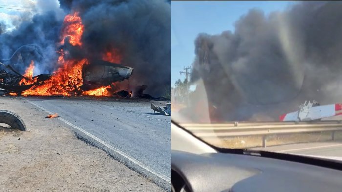 Personas que se encontraban al interior de sus vehículos en el lugar registraron el instante preciso en que ocurrió el impactante accidente en la Ruta.