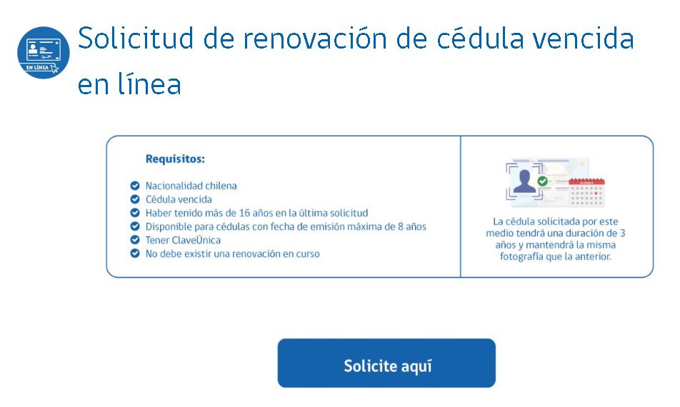 Ministra de Justicia @mriost, subsecretario de Justicia @jgajardofalcon, y el Director Nacional (s) del @RegCivil_Chile anunciaron una nueva alternativa para renovar tu cédula de identidad vencida #RenuevaEnLínea con tu #ClaveÚnica en https://t.co/cWGKgm72Oz pic.twitter.com/R7zIMCYnz2— Registro Civil Chile (@RegCivil_Chile) September 12, 2022